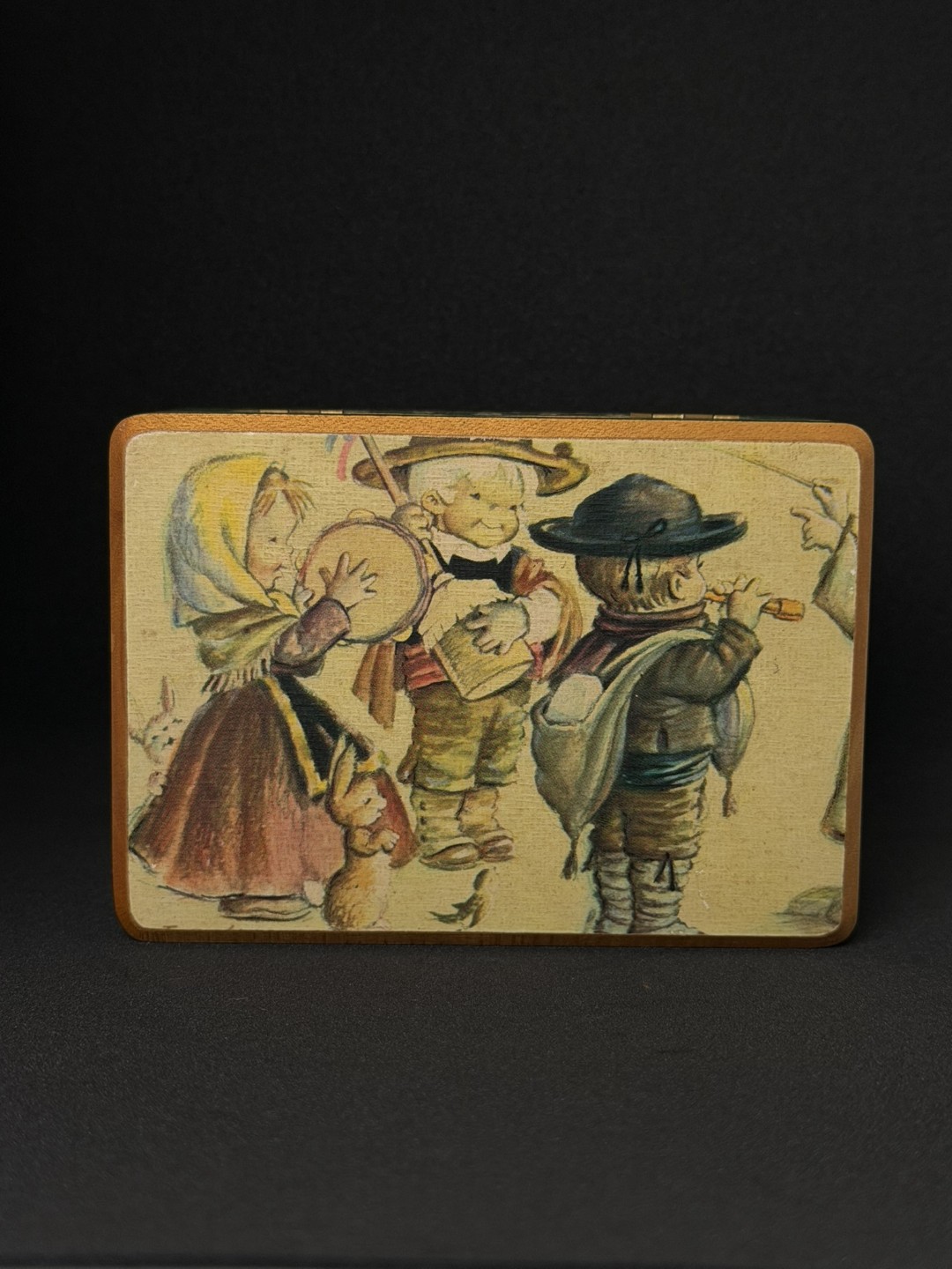This vintage Swiss music box combines a playful storybook illustration with…